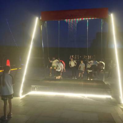现如今秋千的种类越来越多,水幕秋千就是其中一种。它是一款无动力游乐设备,入市以来就深得大众欢迎,还能起到宣传的作用,秋千和水幕的组合,在水幕的上方安装有检测器,可以收集到游玩者的信息,然后通过控制器来控制水幕的落水,当游玩者穿过水幕时,都会体验到惊险感,生怕被水淋湿,从而增添了很多欢乐。