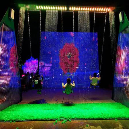 水幕秋千游乐设备是一道靓丽的风景线,水幕上会呈现各种图案、文字、logo等效果,当游玩者在荡秋千时,水幕落水就会呈现出来,搭配上灯光和音效,让人们沉浸之中。水幕秋千游乐设备有互动性、趣味性,男女老少皆可游玩,简单又环保,很适合在各种游乐园、商业展览会、博览会、主题公园、商场等休闲游乐场所,是一款非常有趣的水景游乐设备。